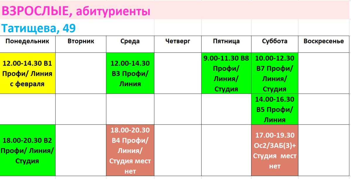 ЗАНЯТИЯ ДЛЯ ВЗРОСЛЫХ И АБИТУРИЕНТОВ