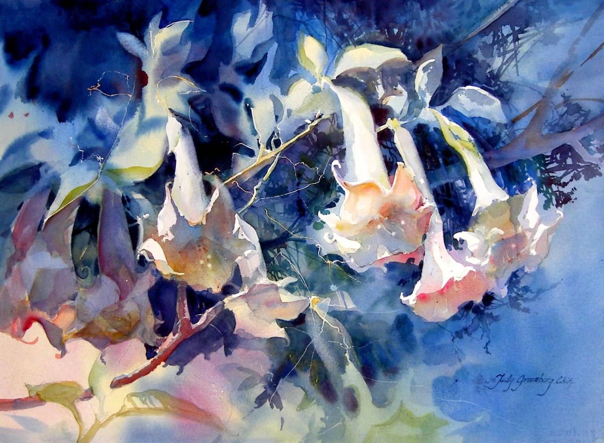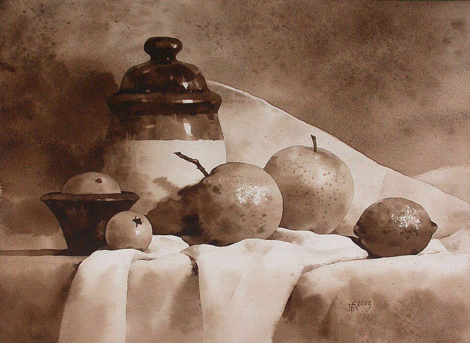 Упражнения на технику: отмывка, вливания цвета в цвет, лессировки.