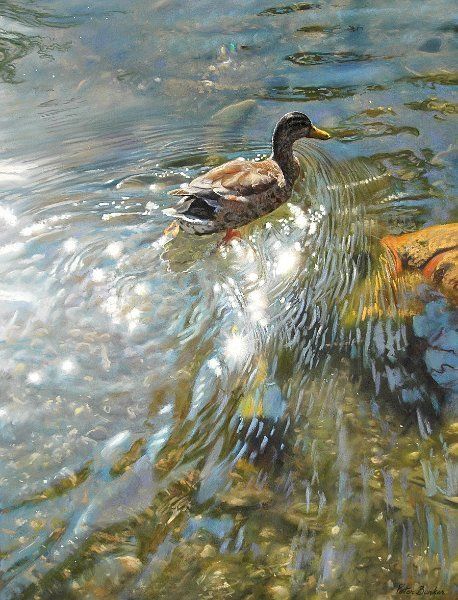 5-7. Пейзаж с водой / с птицами - техники работы по сырому, вливания. Приемы изображения бликов, отражений. Работа с резервом - копия работы художника |