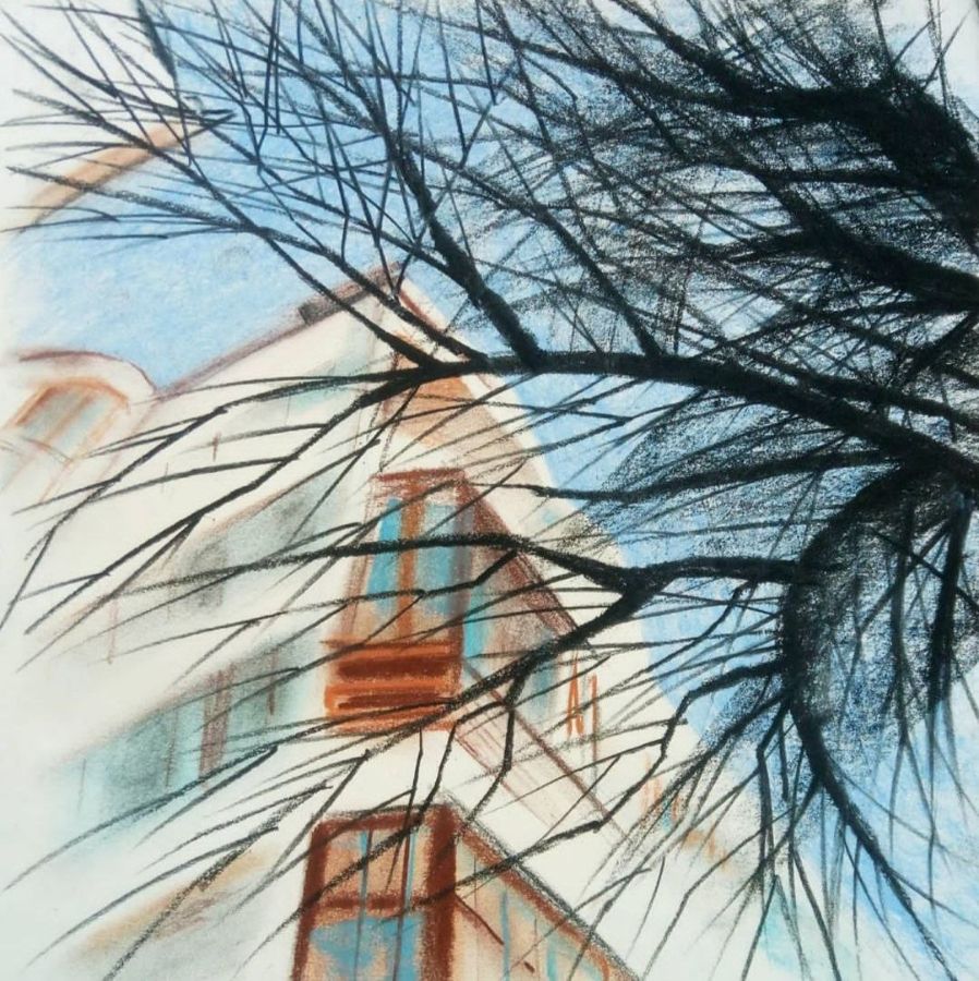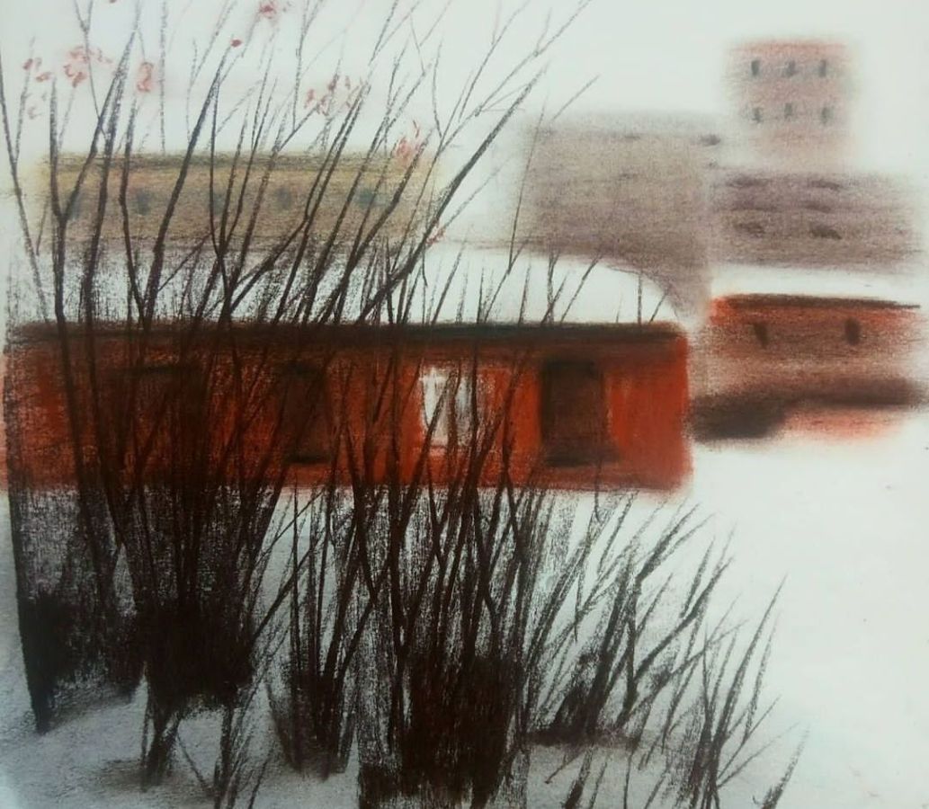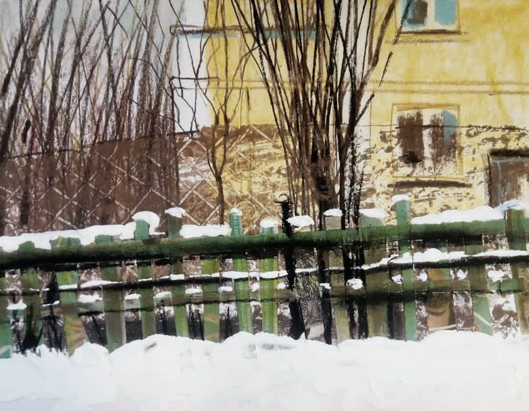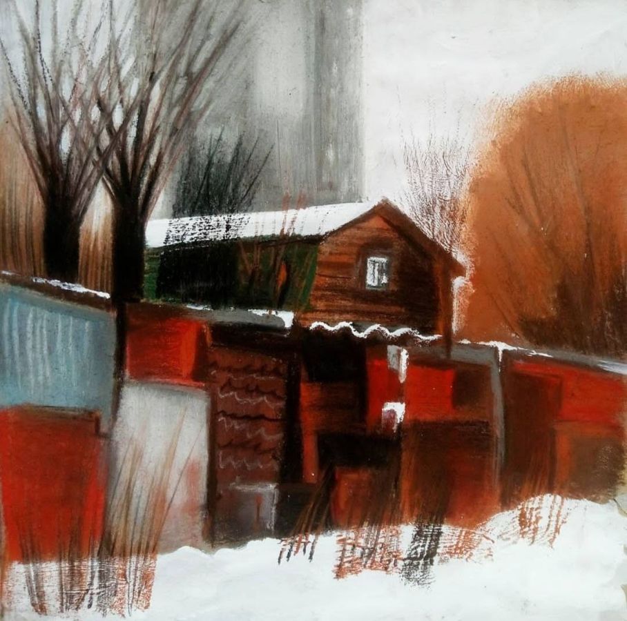 Большую часть работ экспозиции составляют пейзажи Екатеринбурга 2020 – 2021 года. Не знаковые, узнаваемые виды, а близкие художнице улицы, старые дома, с фактурами и историей. Очень много родного Верх-Исетского района. Некоторые нарисованные домики и дворы остались только на картинках художницы – в жизни они снесены и теперь на их месте стоят многоквартирные высотки.