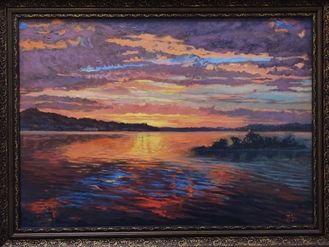 Орлова И.В. Закат на Свердловском море 2021 г. Холст на оргалите 50х70 (9)