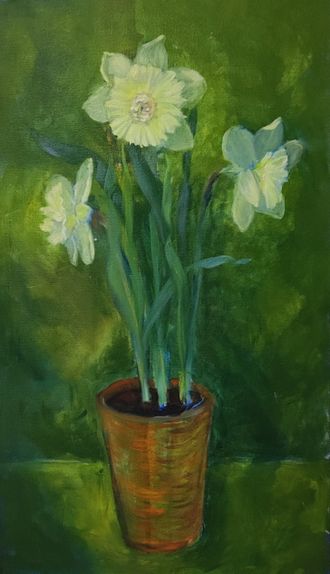 Орлова И. Нежность (Нарциссы) 2022 г. Холст, масло 50Х30 (14)